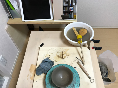 その晩は東京から終電で帰ってきて疲れたのでそのまま仕事場に泊まり込んでしまい、翌土曜日も仕事場でスタート。ちょうどいいやということで、日がな1日のんびりと作陶することにしました。